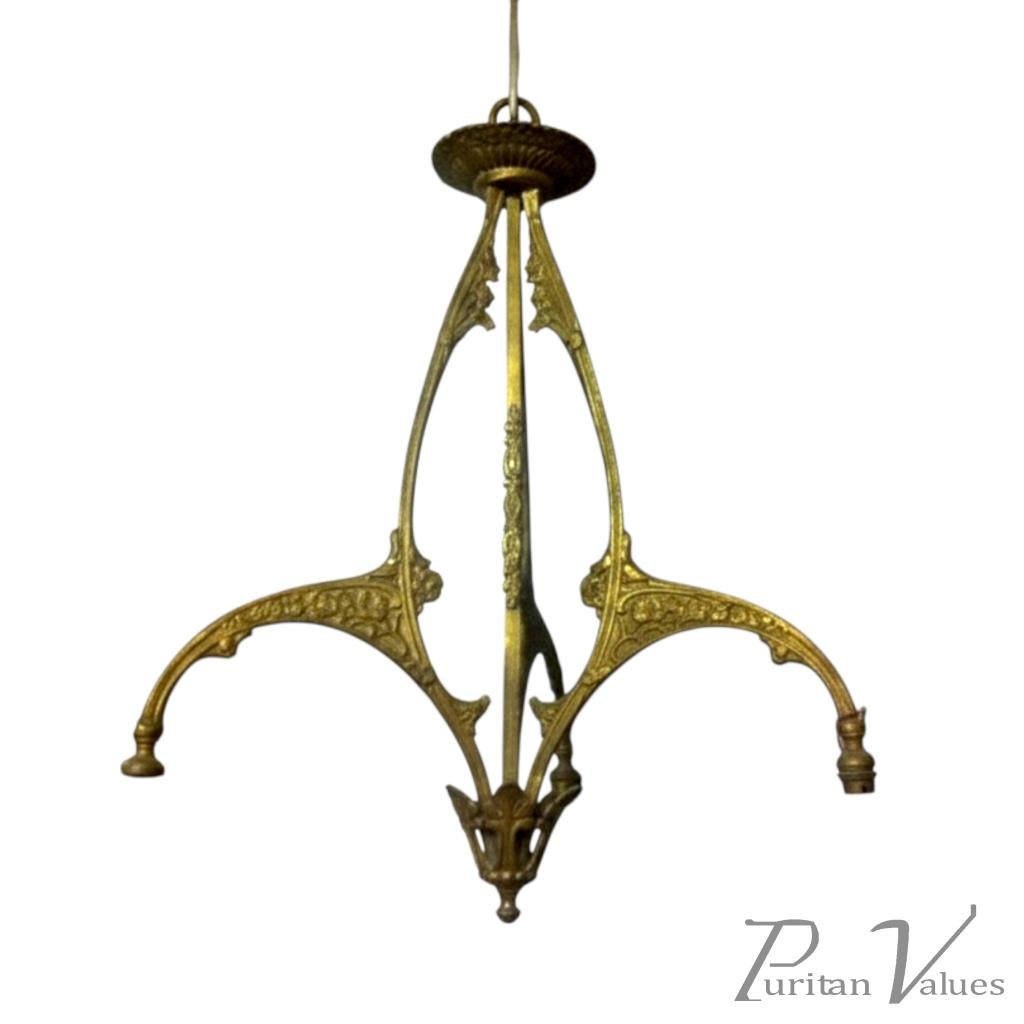 A Guilded Continental Art Nouveau Three Branch Arm Ceiling Chandelier