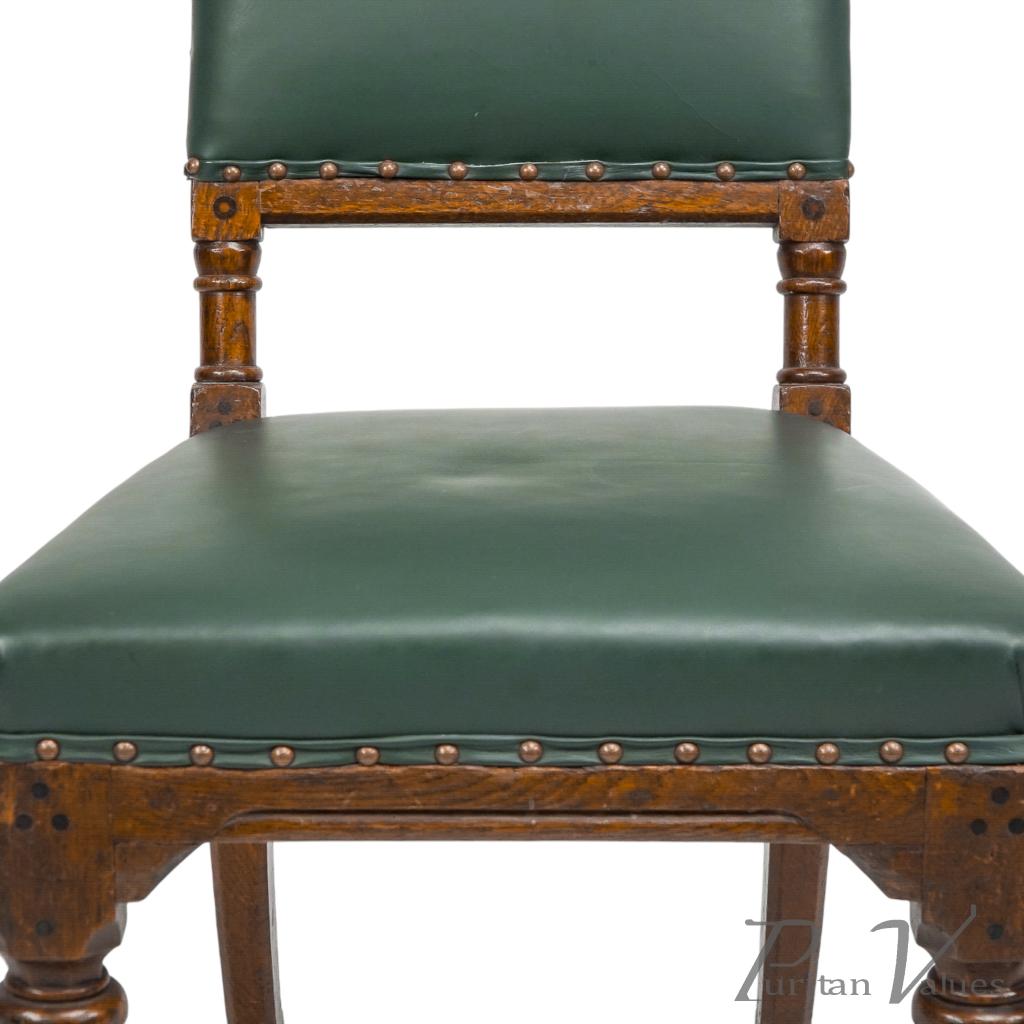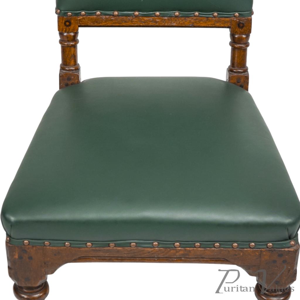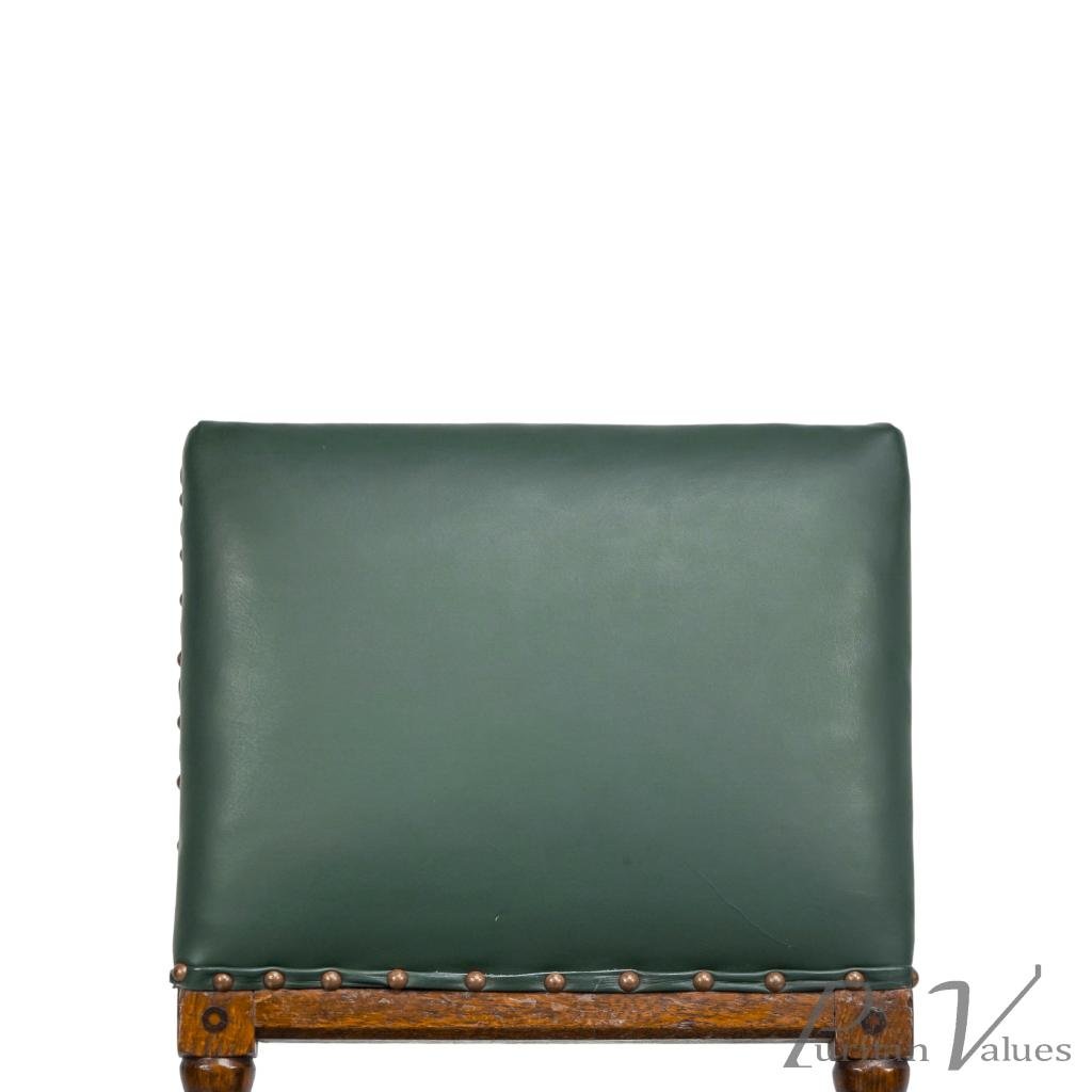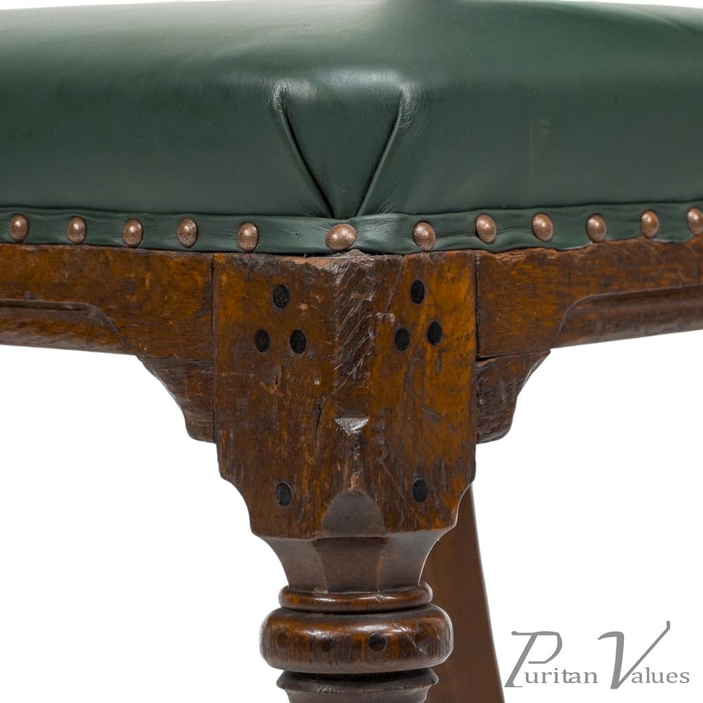 Professionally reupholstered in a quality green leather. Retaining the original label Marsh and Jones (late Kendell & Co.) from Leeds.