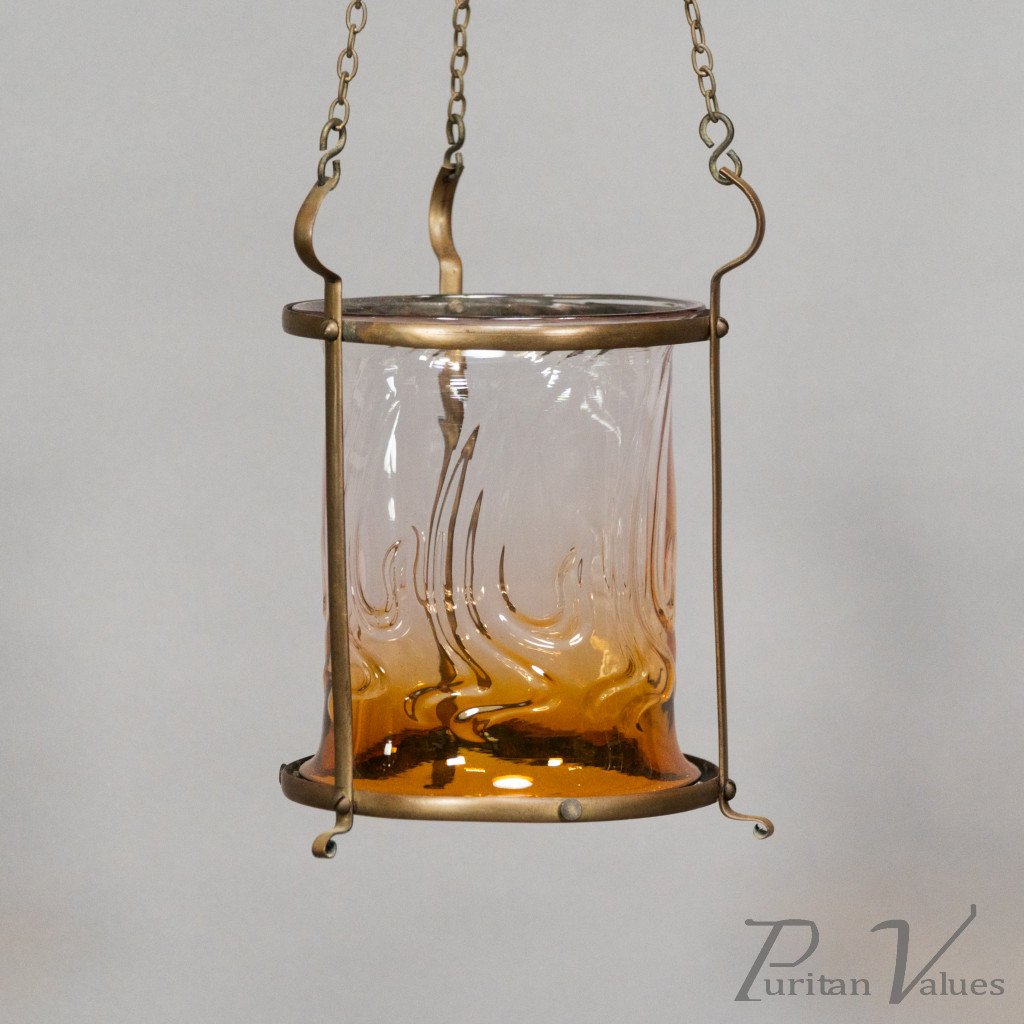 An Arts & Crafts Brass Lantern with Subtle Bronze Tinged Shade