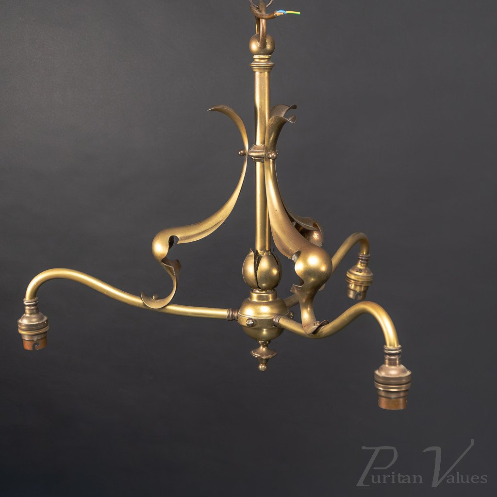 Arts and Crafts – Pair of Brass Three-Branch Ceiling Lights, c.1900