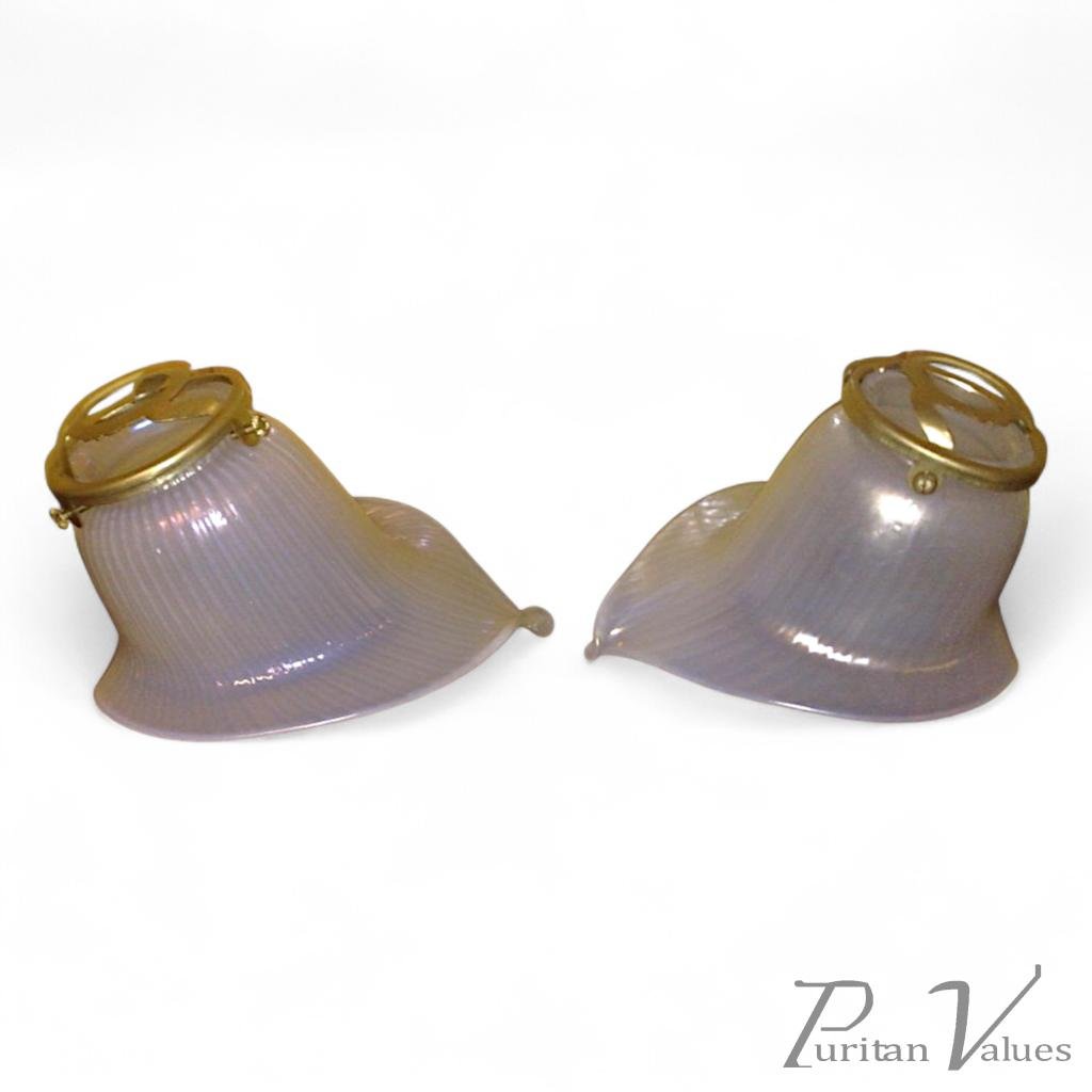 Pair of Lily-Shaped Vaseline Glass Shades with Flared Rims