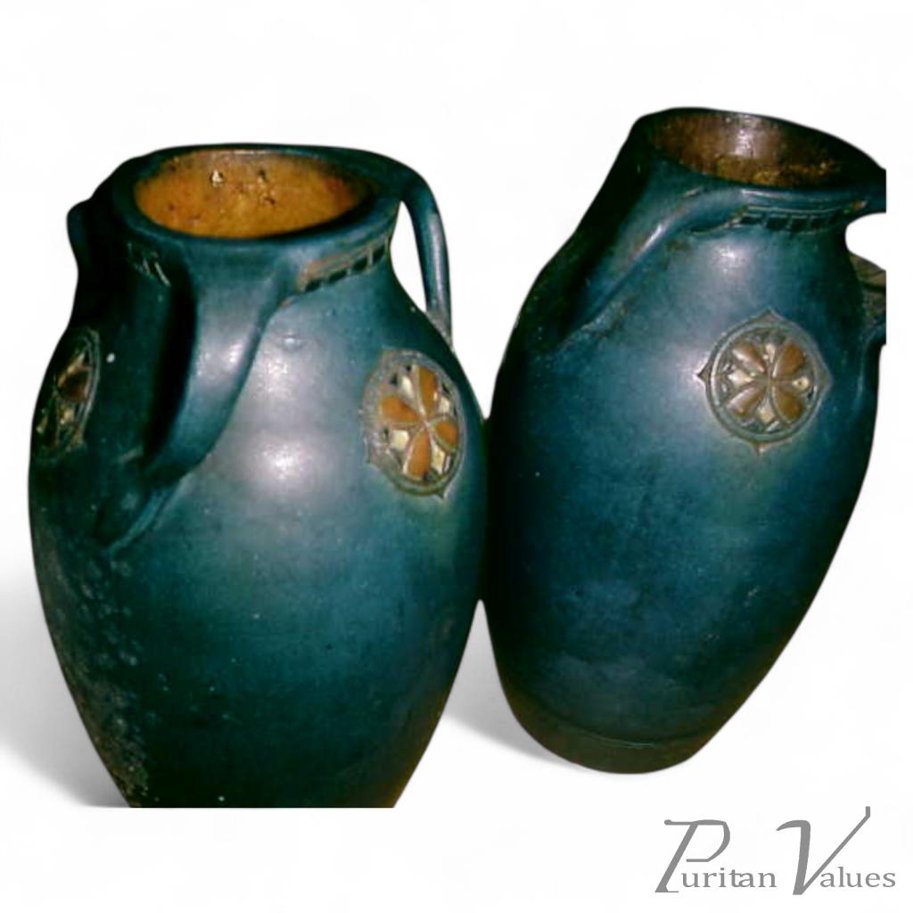 A Pair of Belgium Art Nouveau 3 Handled Vase