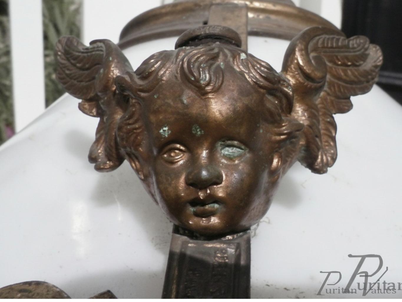 A Period Brass Light Fitting with Winged Cherubs