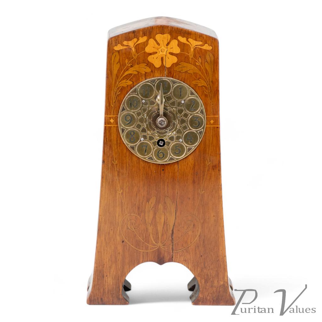 Art Nouveau Dutch or German Mantle Clock with Inlaid Floral Decoration (c.1900)