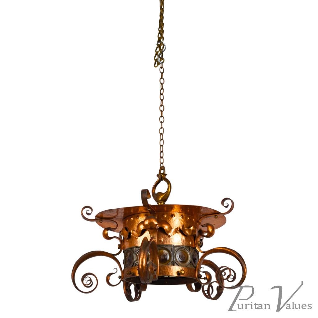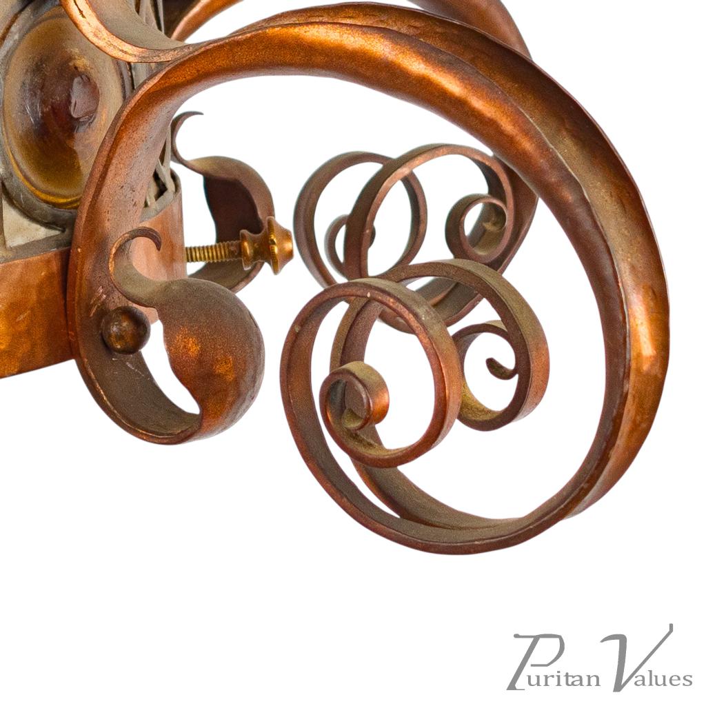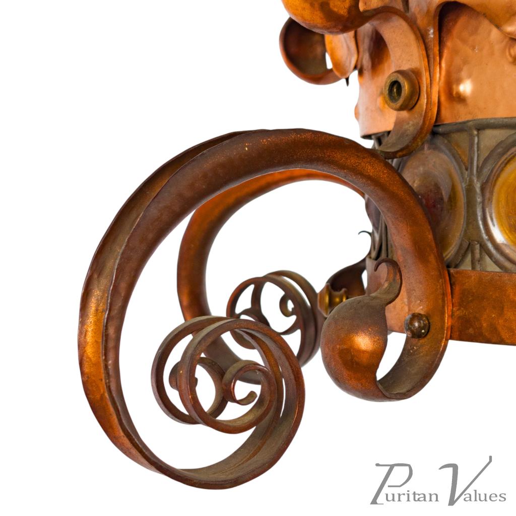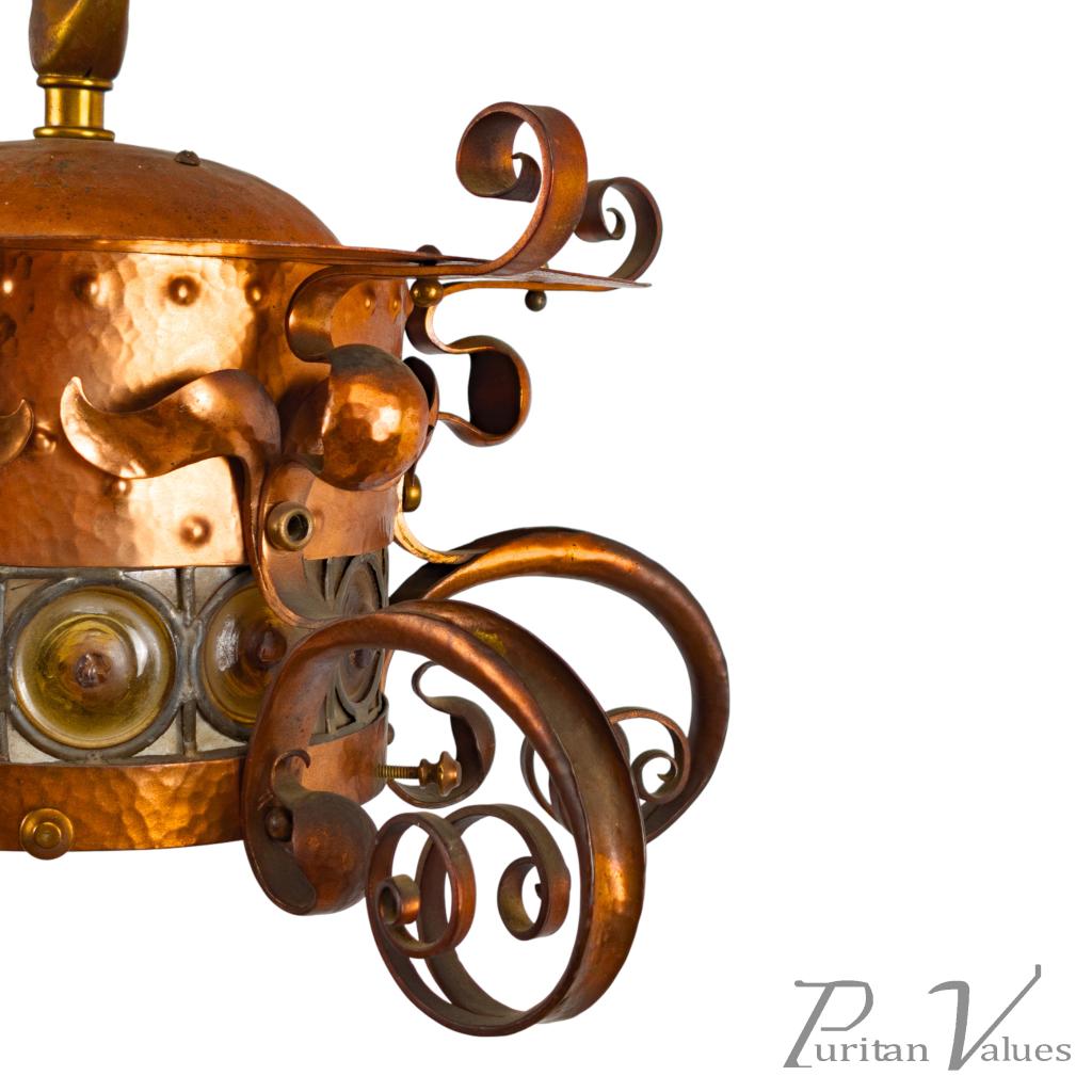 Birmingham Guild of Handicraft, Attributed – Arts and Crafts Copper Scrollwork Chandelier