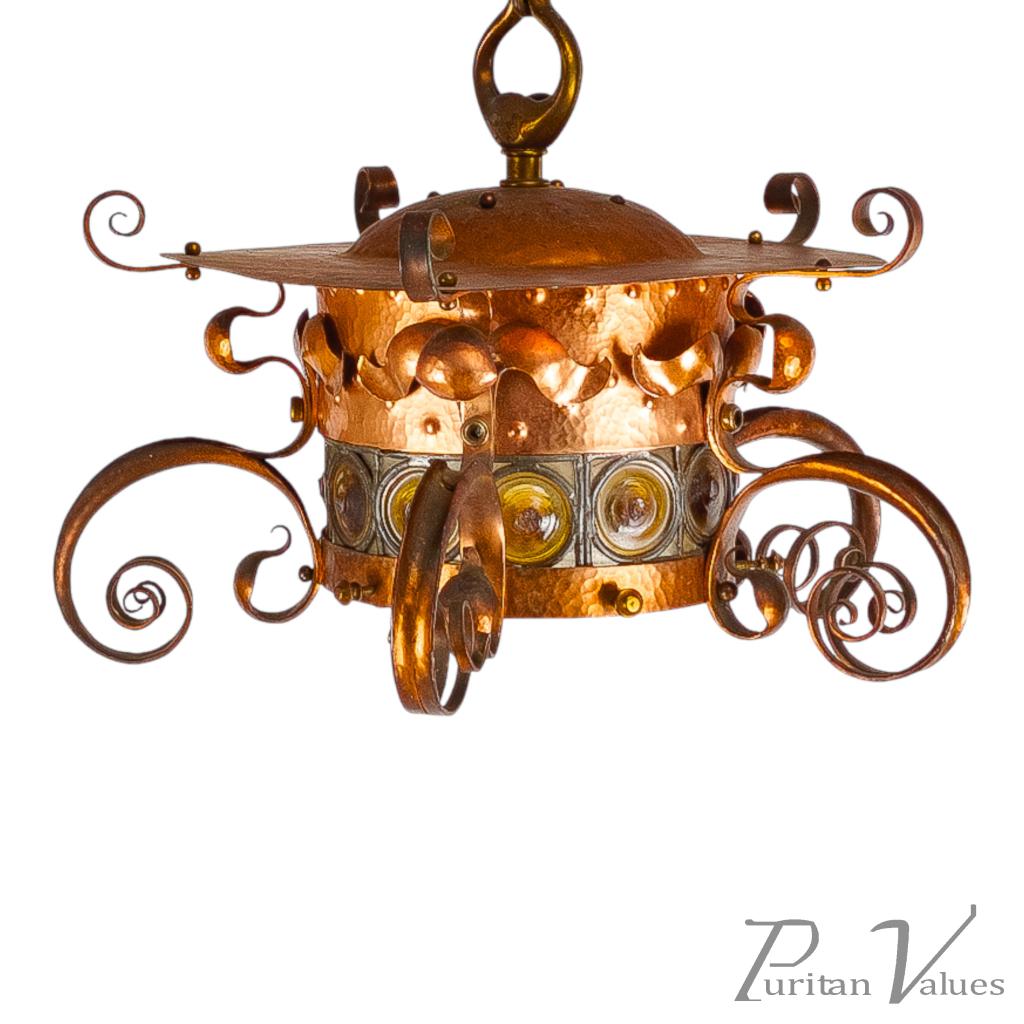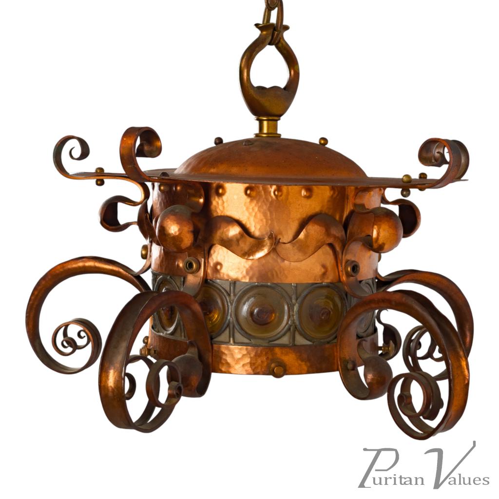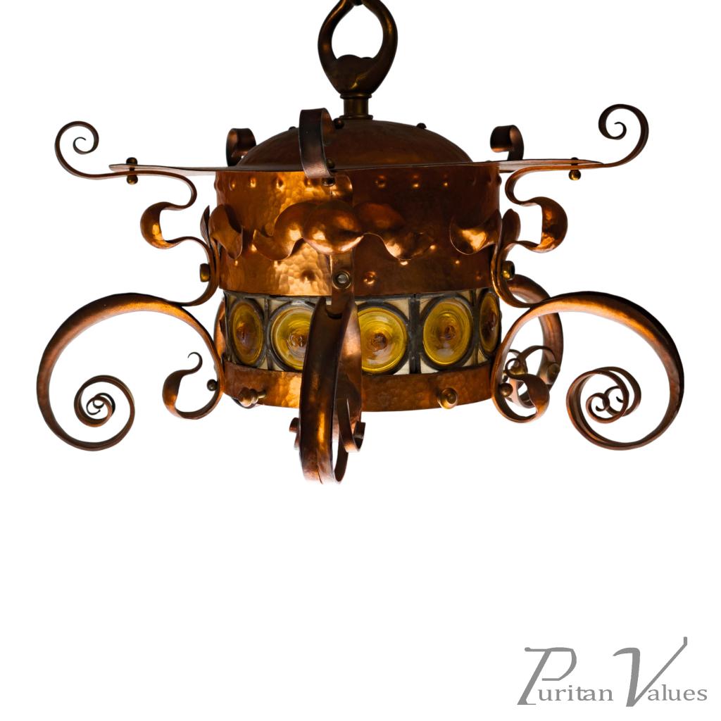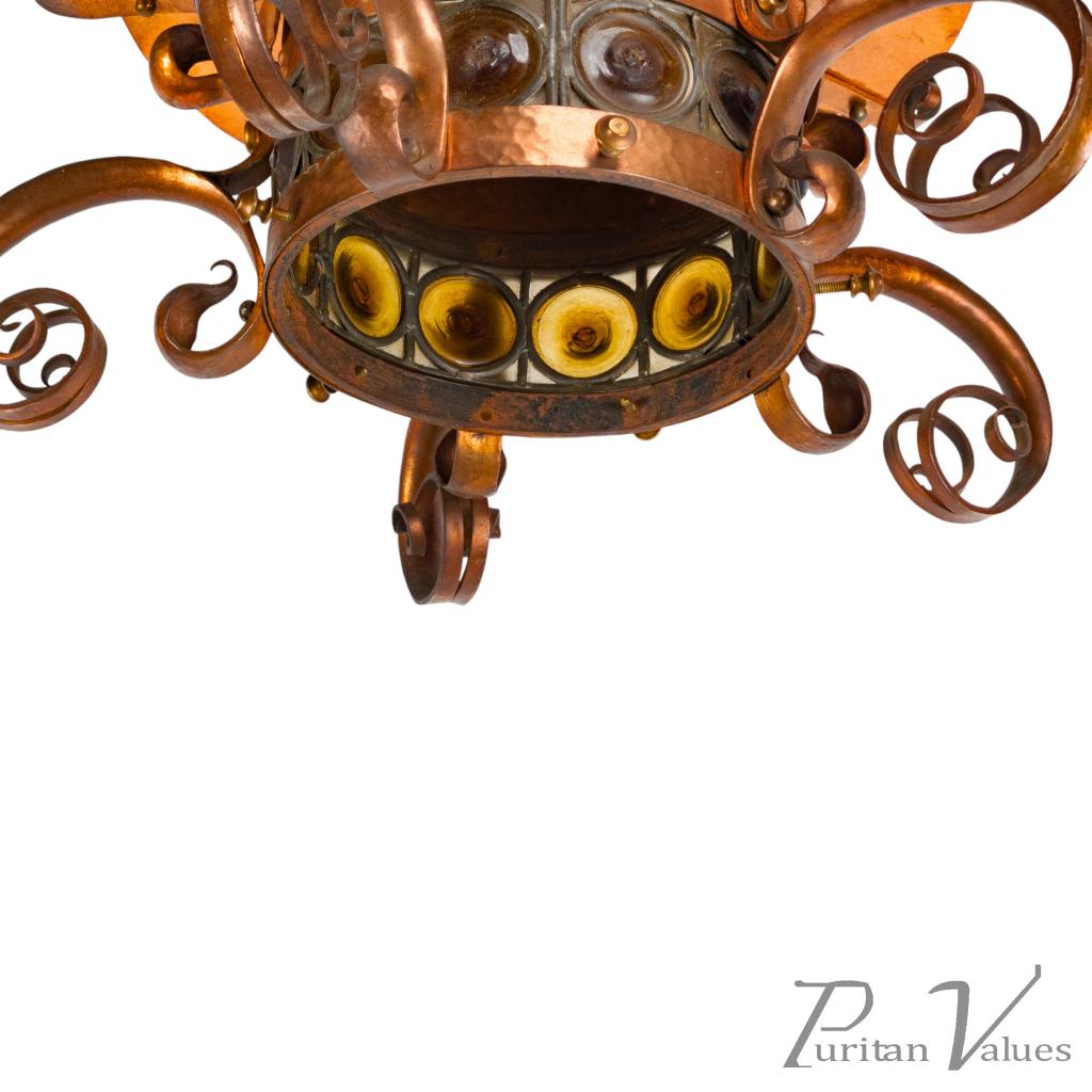 Birmingham Guild of Handicraft, Attributed – Arts and Crafts Copper Scrollwork Chandelier