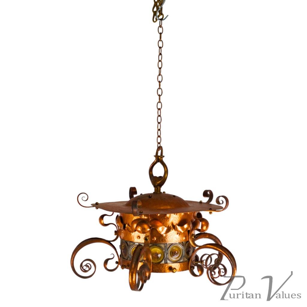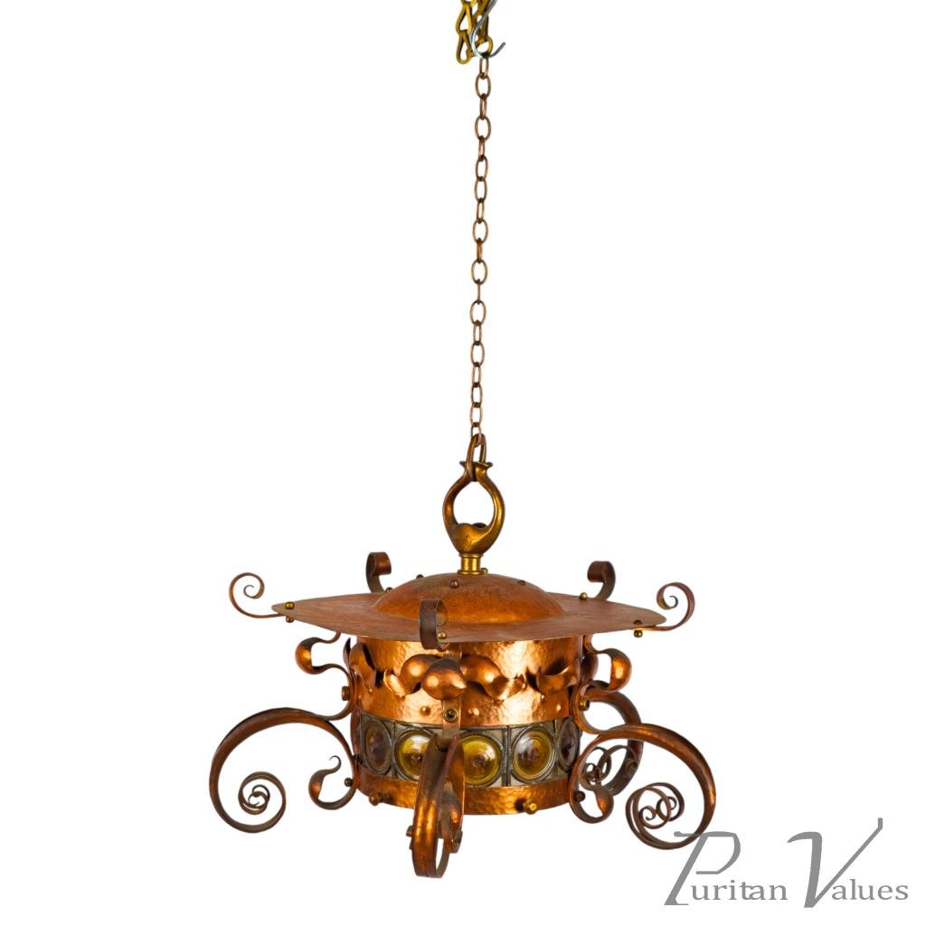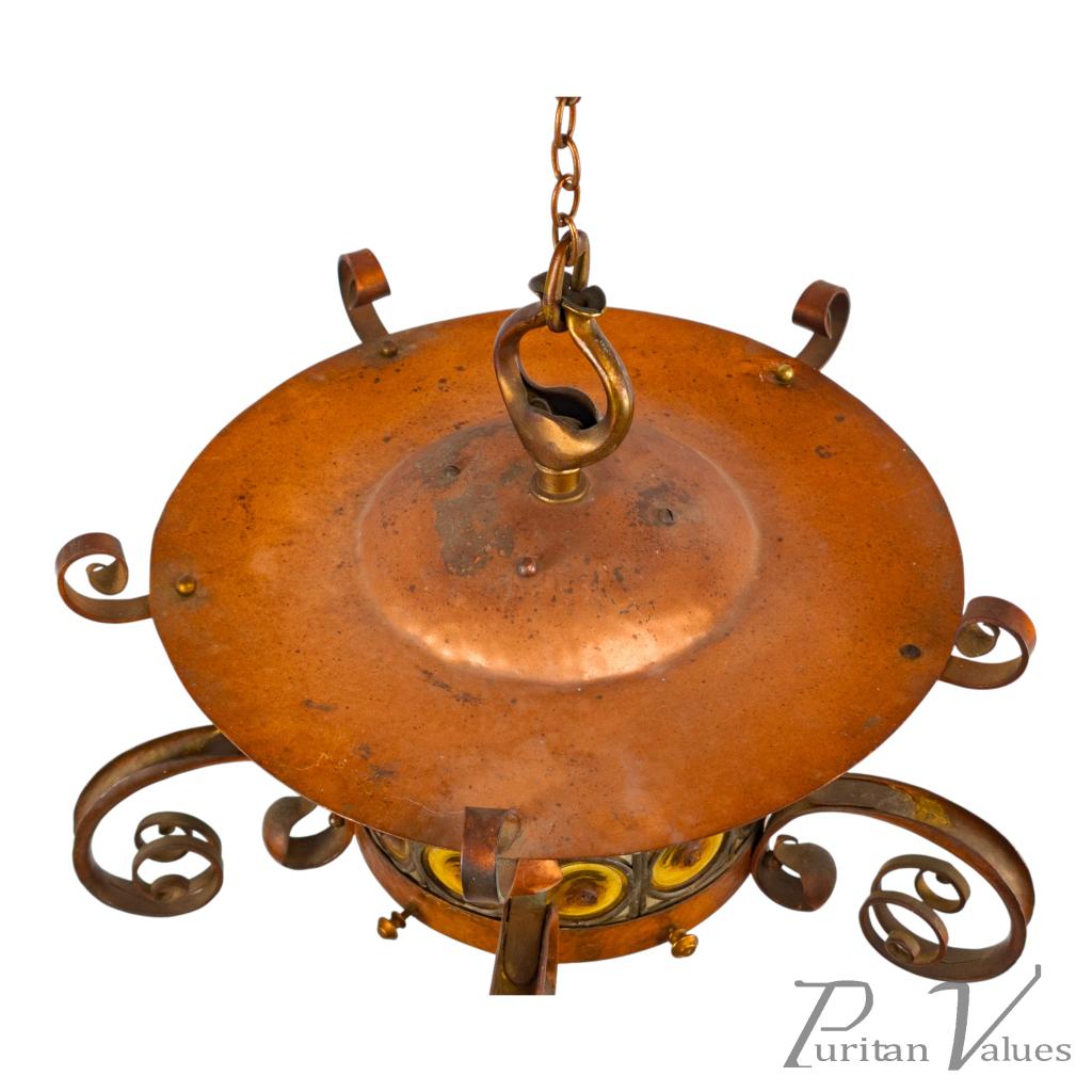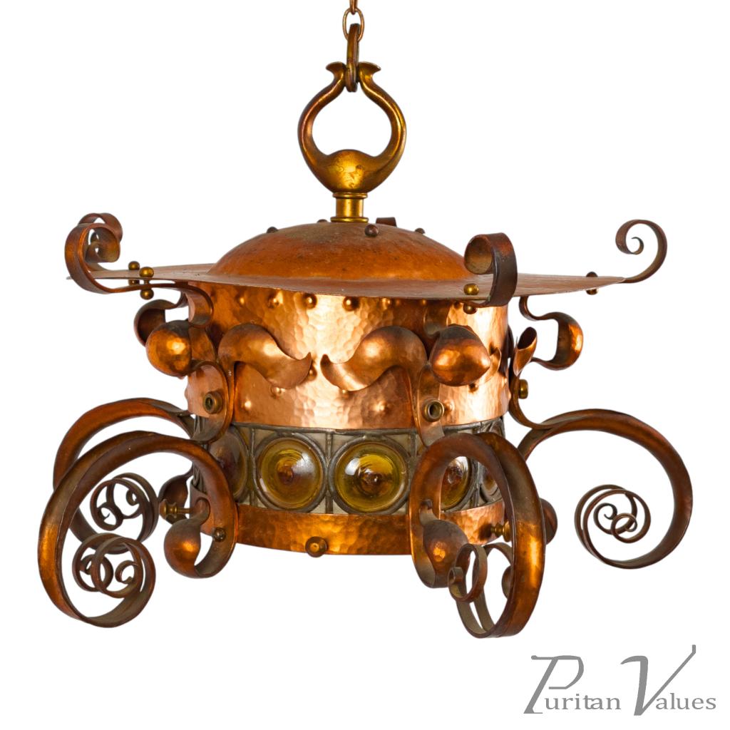 Birmingham Guild of Handicraft, Attributed – Arts and Crafts Copper Scrollwork Chandelier
