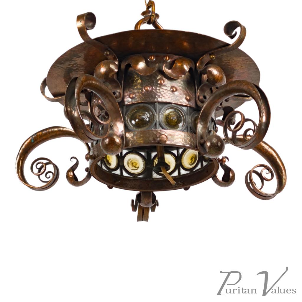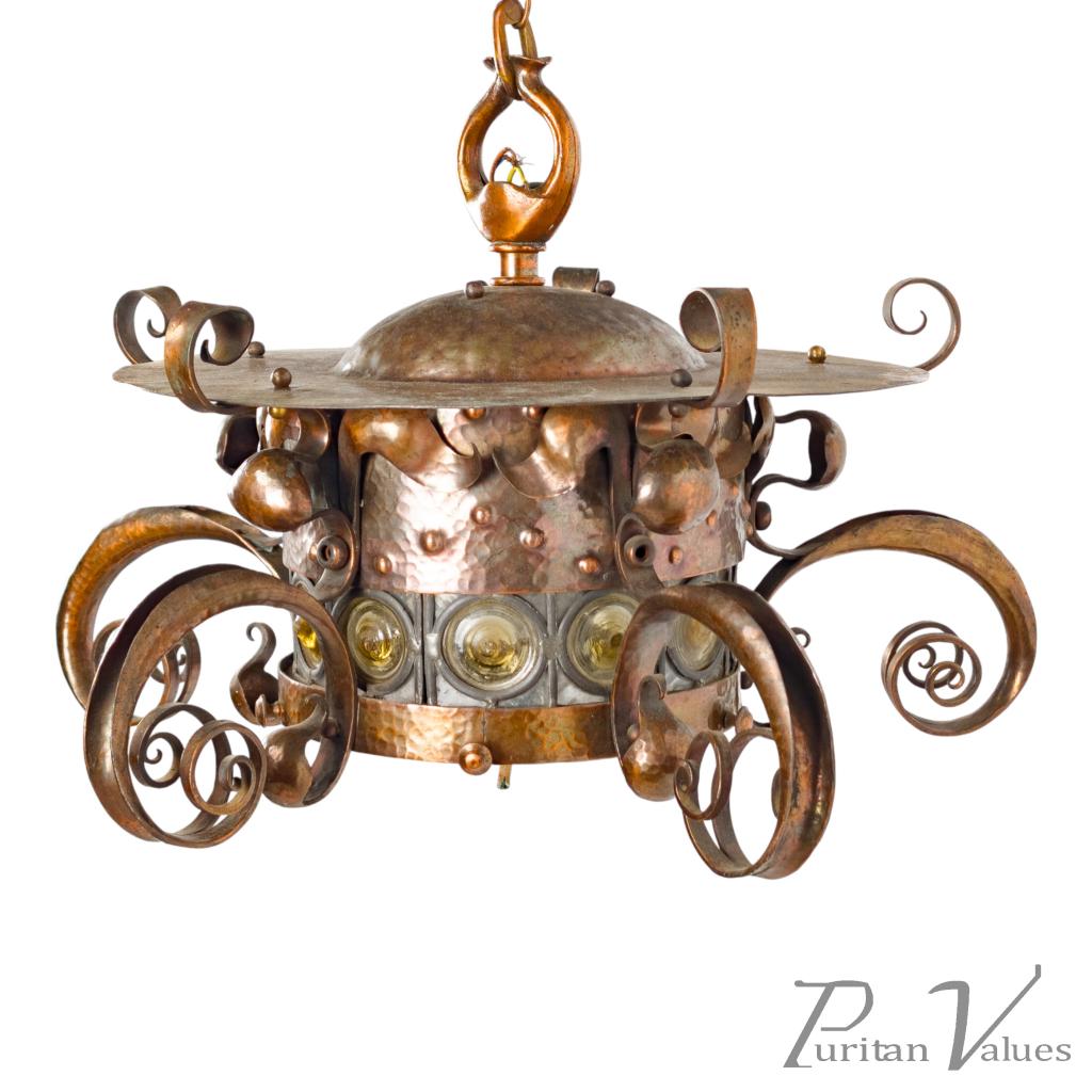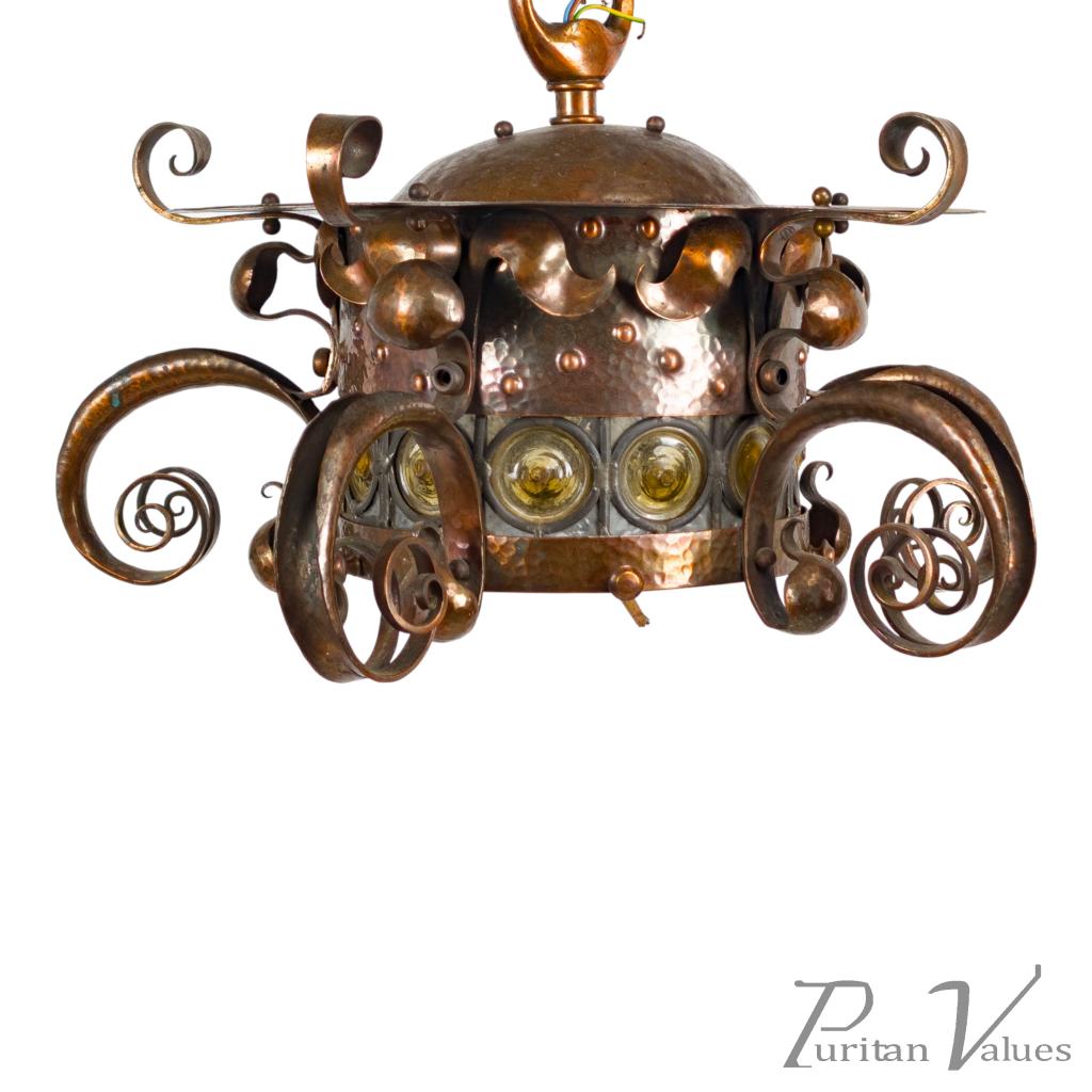 Birmingham Guild of Handicraft, Attributed – Arts and Crafts Hammered Copper Chandelier