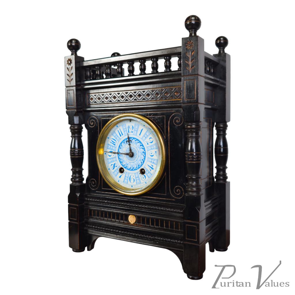 Bruce James Talbert – Aesthetic Movement Ebonised Walnut Mantel Clock