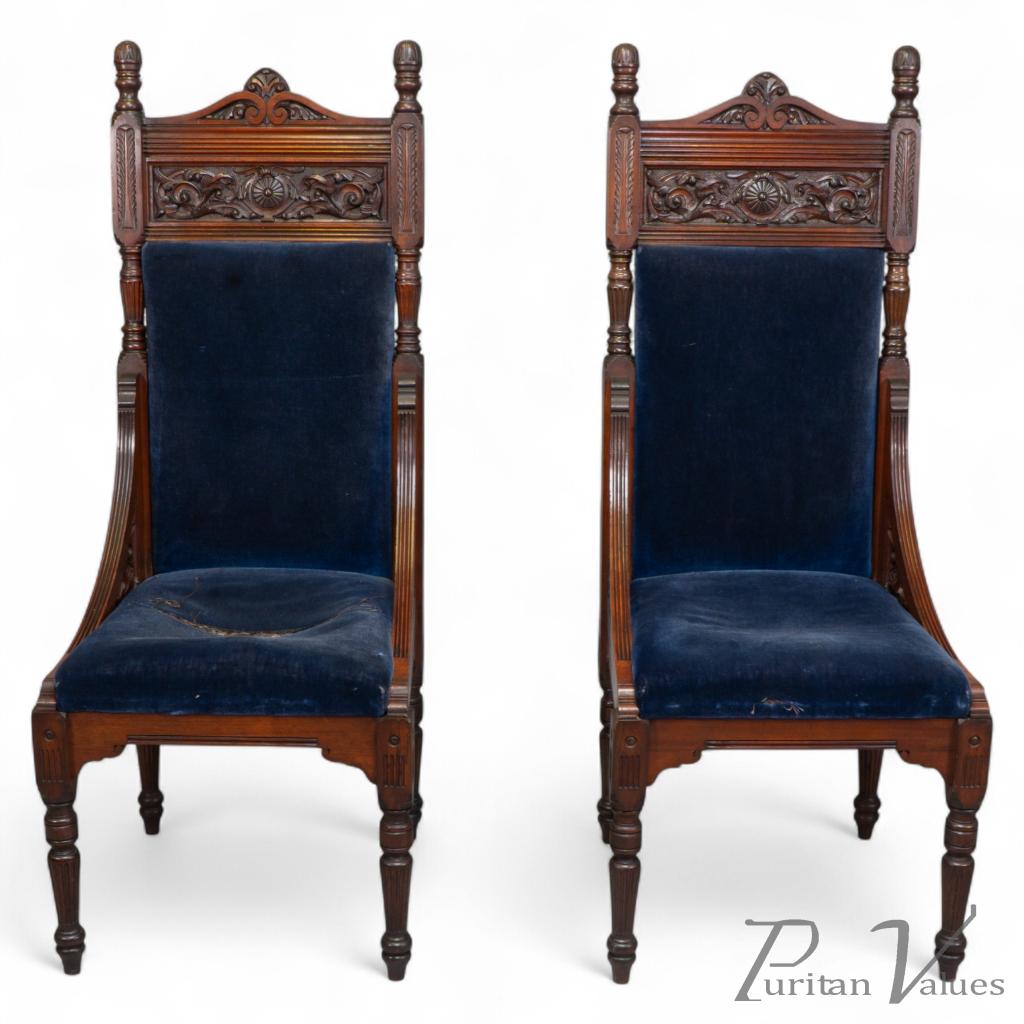 A pair of tall back throne style Aesthetic Movement chairs