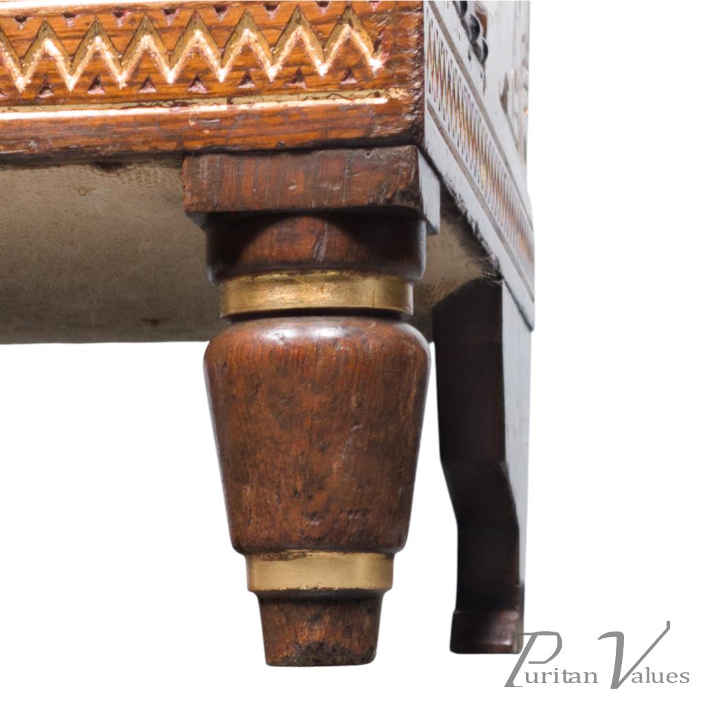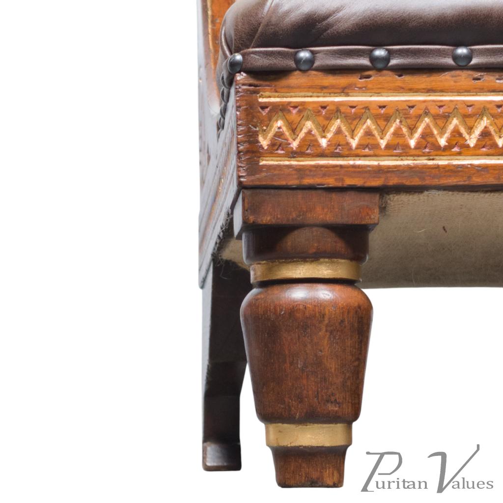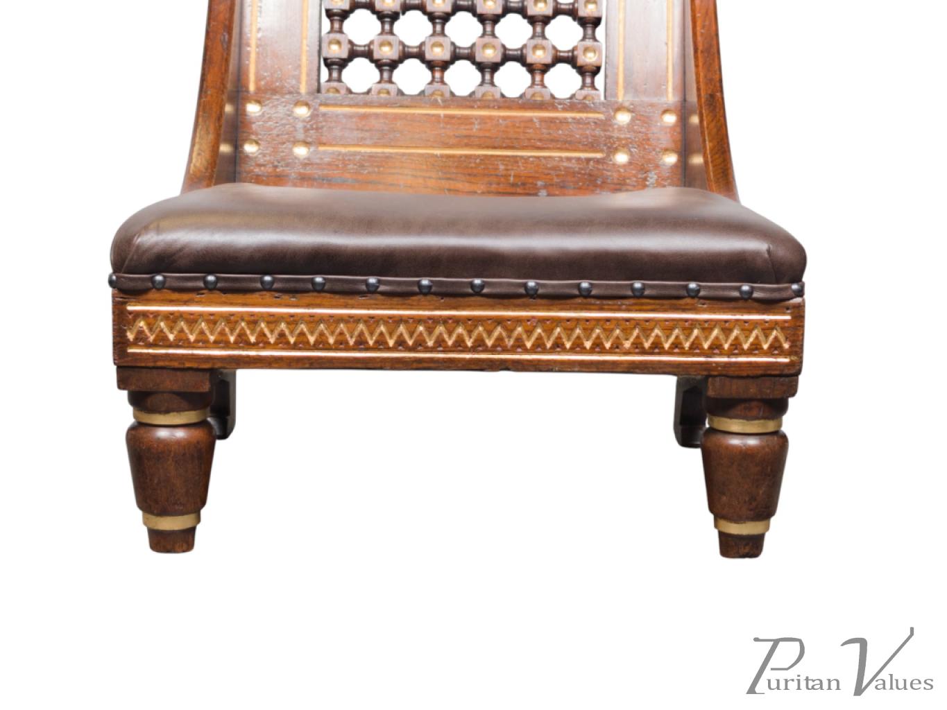 Dr Christopher Dresser made by Art Furniture Alliance. An Egyptian Revival Aesthetic Movement low chair with deeply incised and gilded decoration. Circa 1881–83.