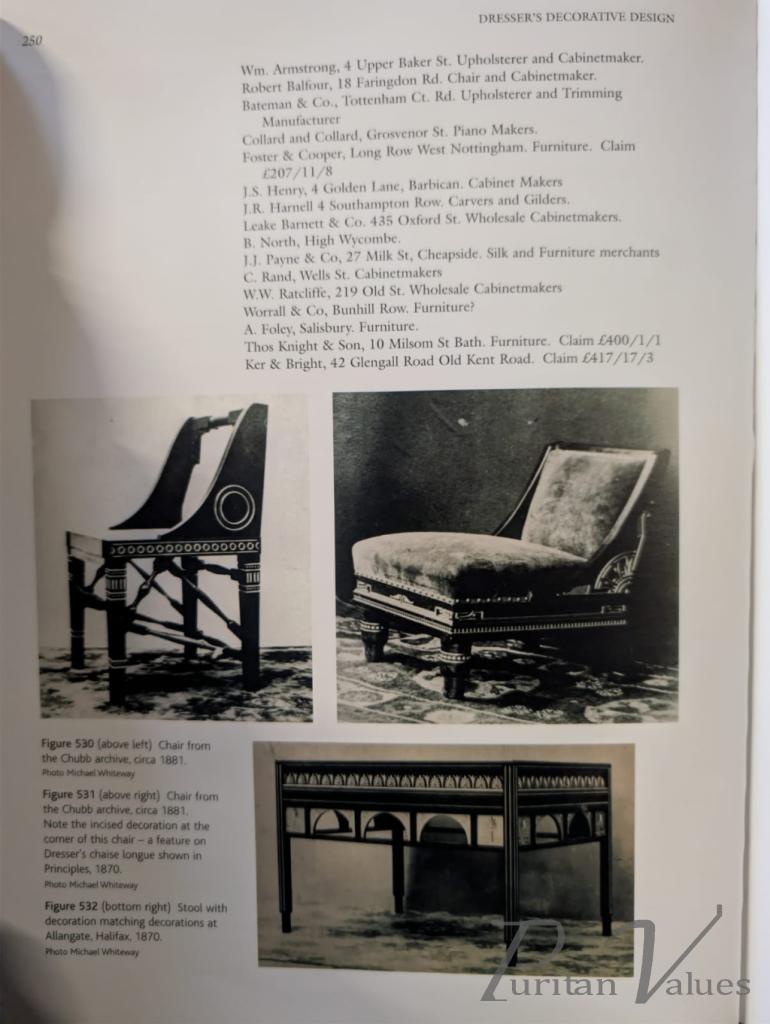 Christopher Morley, Dresser’s Decorative Design. pg 250 figure 531. Where there is a period photo from the Chubb archive Circa 1881. Images attached.
