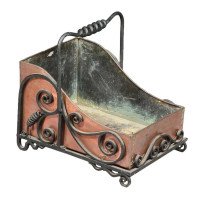 This pair of fire dogs in brass belong to the Aesthetic Movement (1860–1890), c.1900, English, designed by Christopher Dresser for Benham and Froud. Each has a short upright over a ribbed spherical body, the cross bar finely turned and finished with tight scrolled terminals. Three splayed legs give a stable tripod stance at the hearth, the profiles reading as clear geometry rather than heavy ornament. Dresser favoured simple, repeatable forms that express function through outline and proportion, an approach well suited to Benham and Froud’s quality brassware ranges of the period.