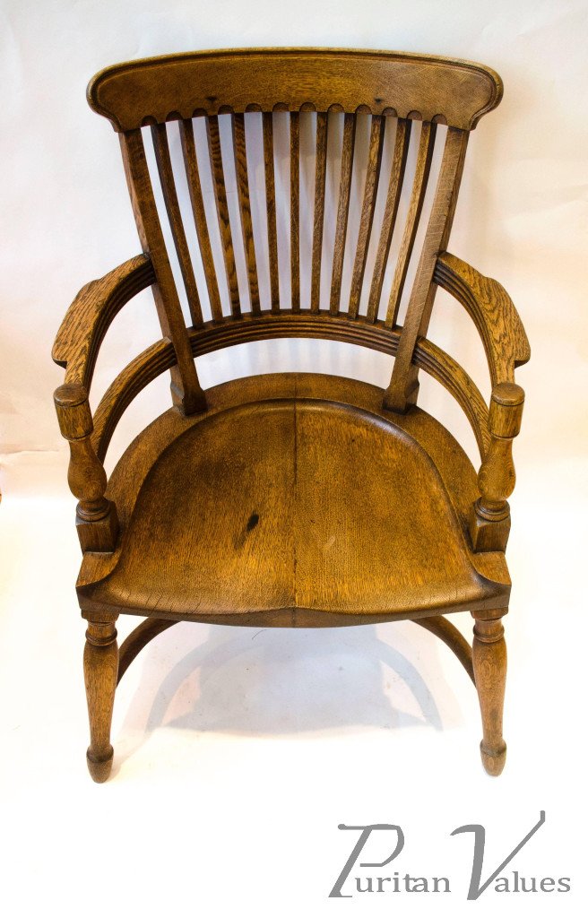 Made by James Peddle or Smee. An oak armchair with an ergonomically perfectly shaped back, a very comfortable armchair indeed with sabre back legs and turned angled front legs all connected by a crinoline hoop stretcher.