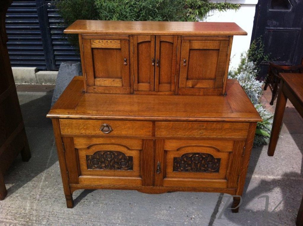 George Walton Style of a Small Arts & Crafts Oak Sideboard with Floral Carvings