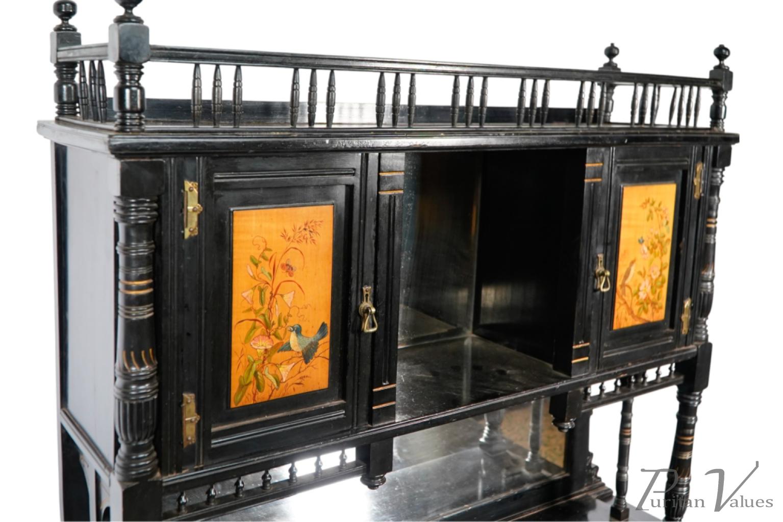 Gillow and Co. – Aesthetic Movement Side Cabinet with Painted Floral Panels