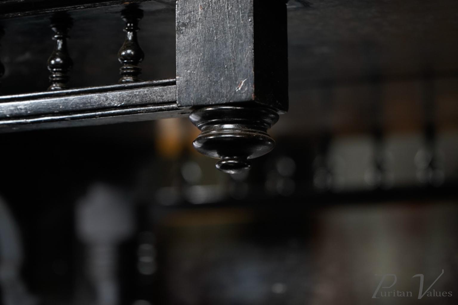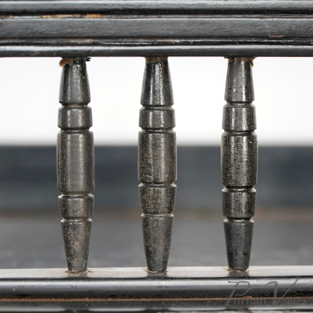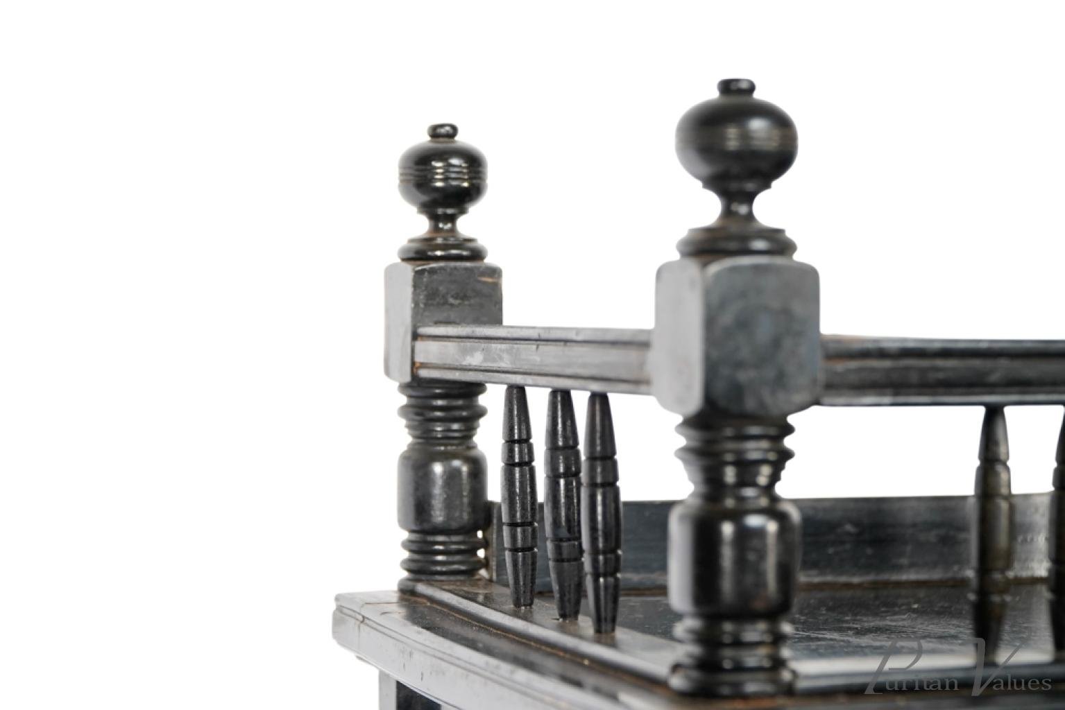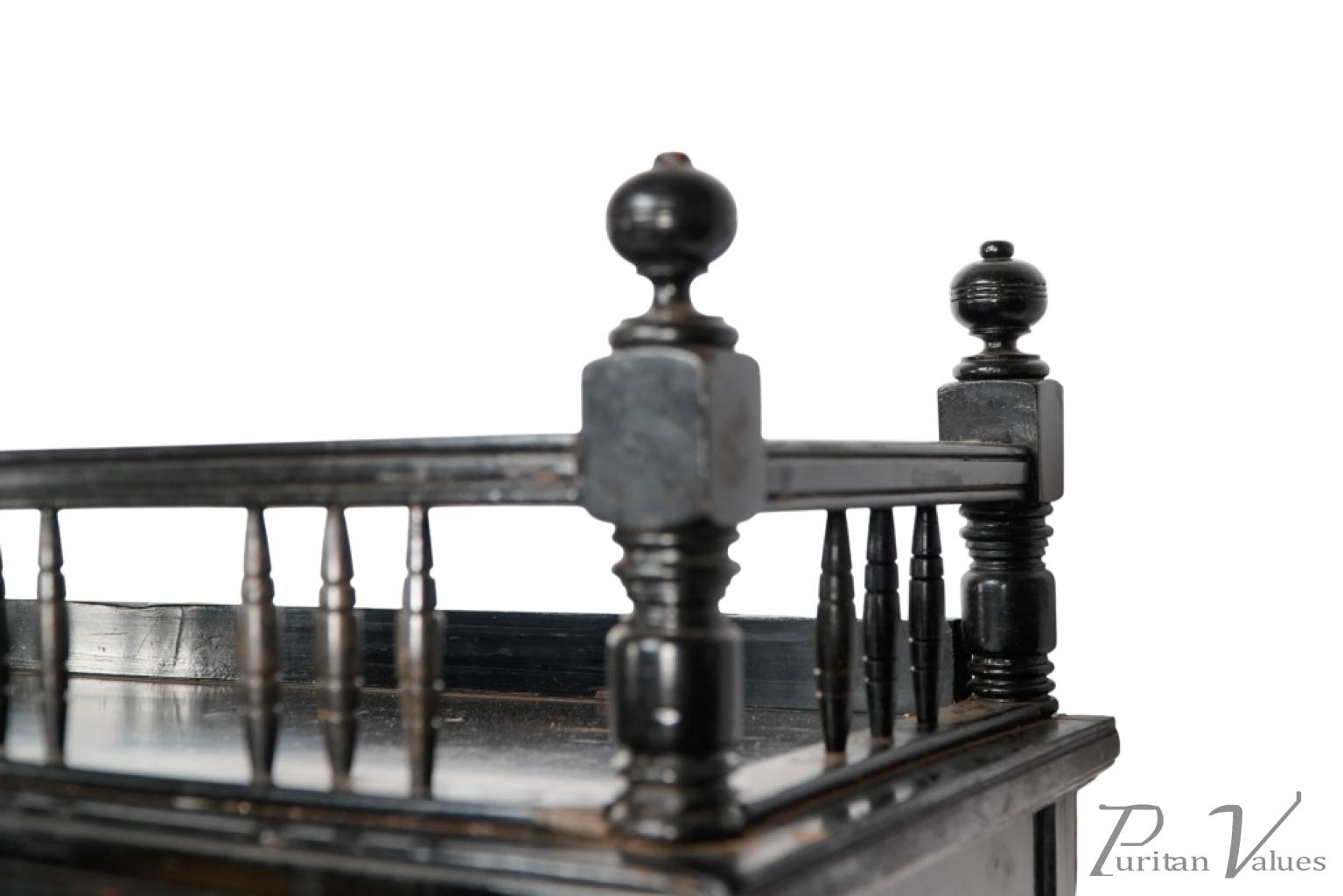 An Aesthetic Movement side cabinet with hand painted floral panels to the doors and drawers; with a turned gallery to the top and to the lower shelf.