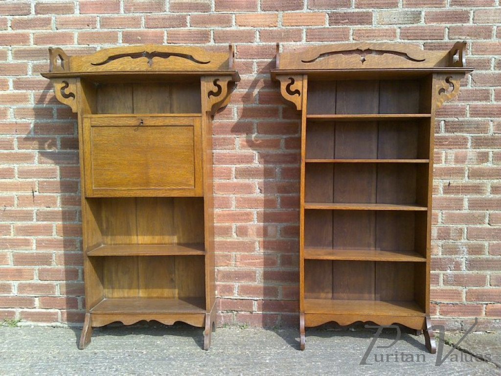A good quality Liberty & Co., Arts and Crafts golden oak bookcase and matching Bureau bookcase
