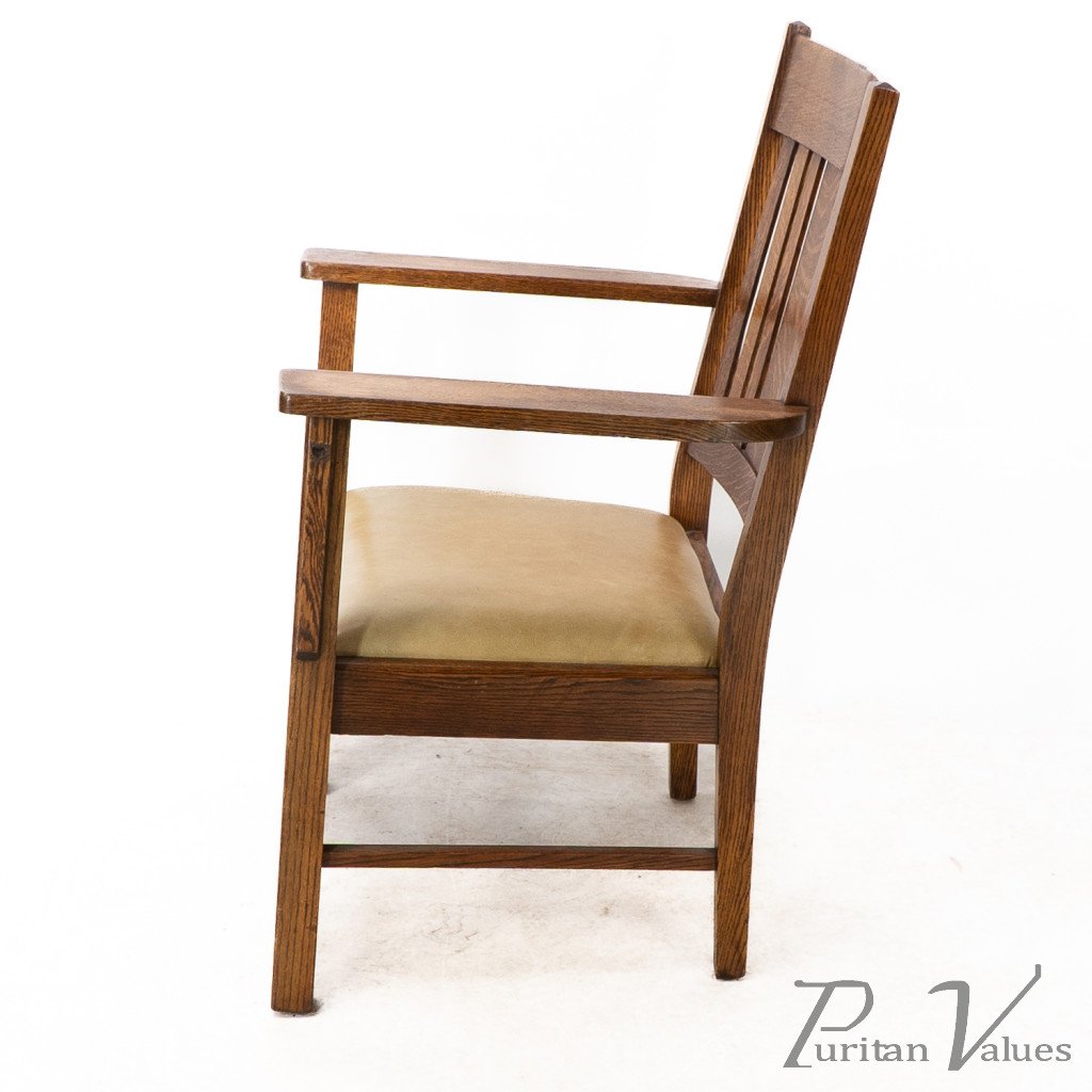 L&jg Stickley Arts & Crafts Oak Armchair with Curved Back & Shaped Arm Supports