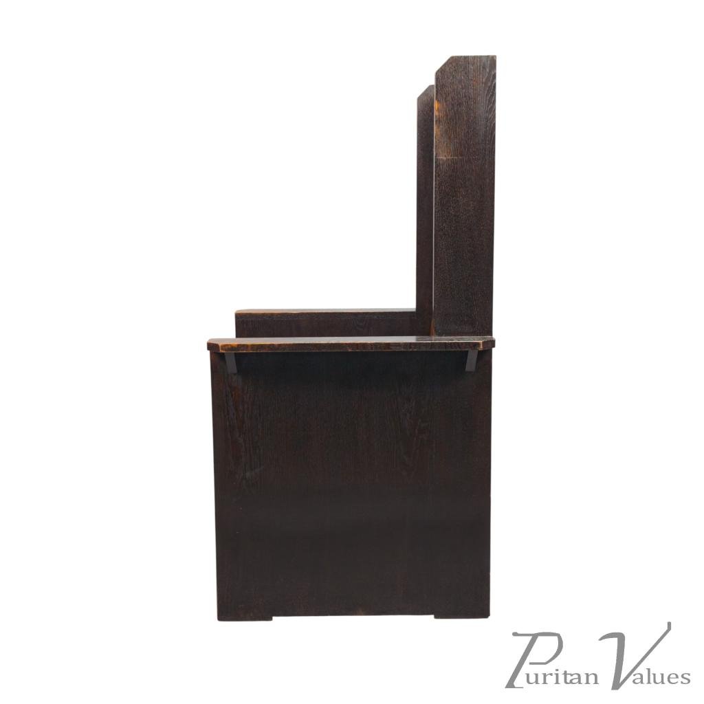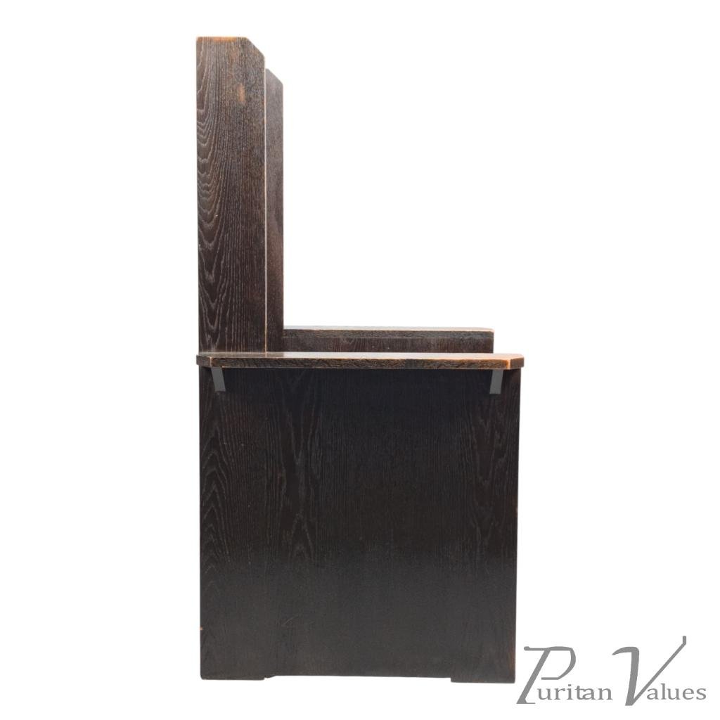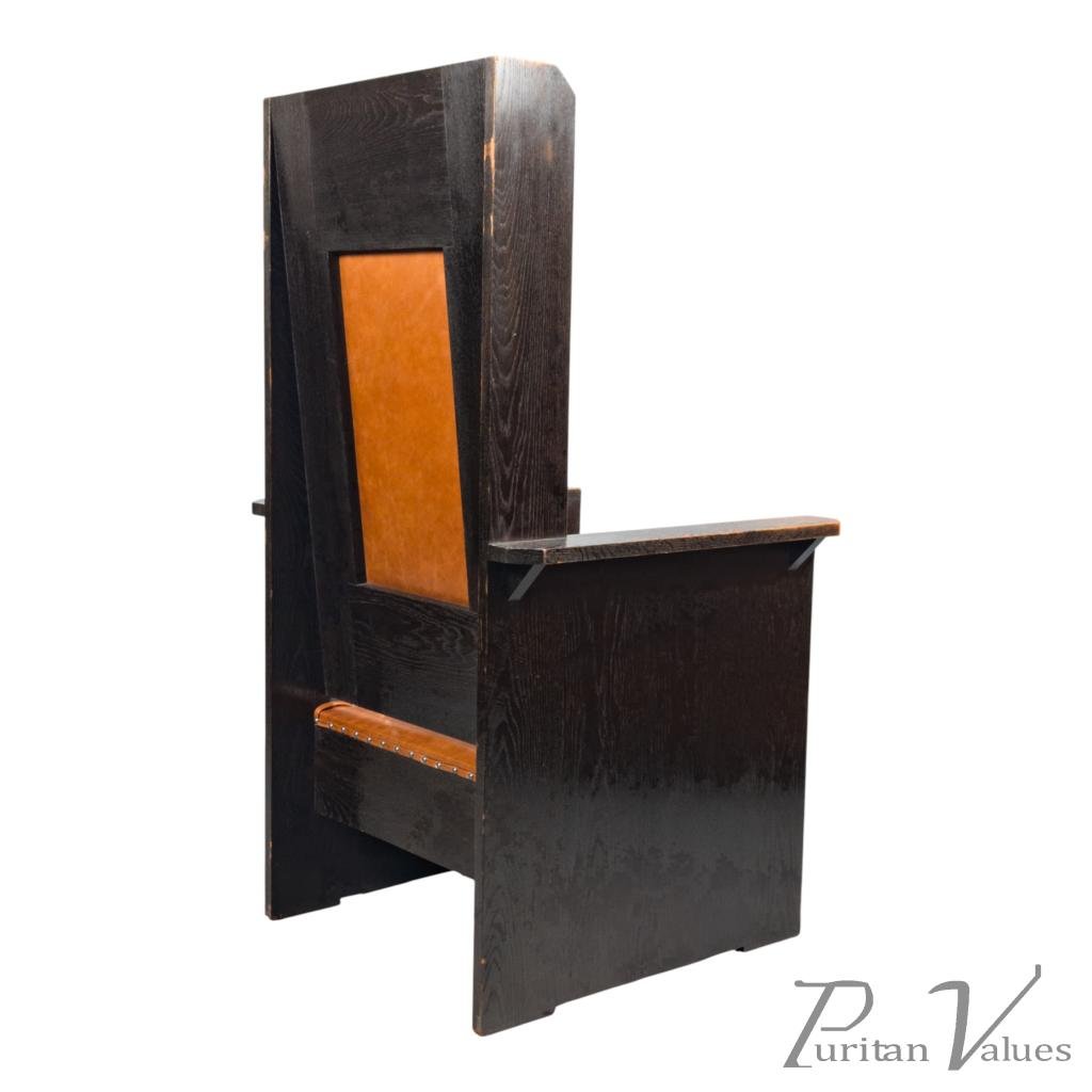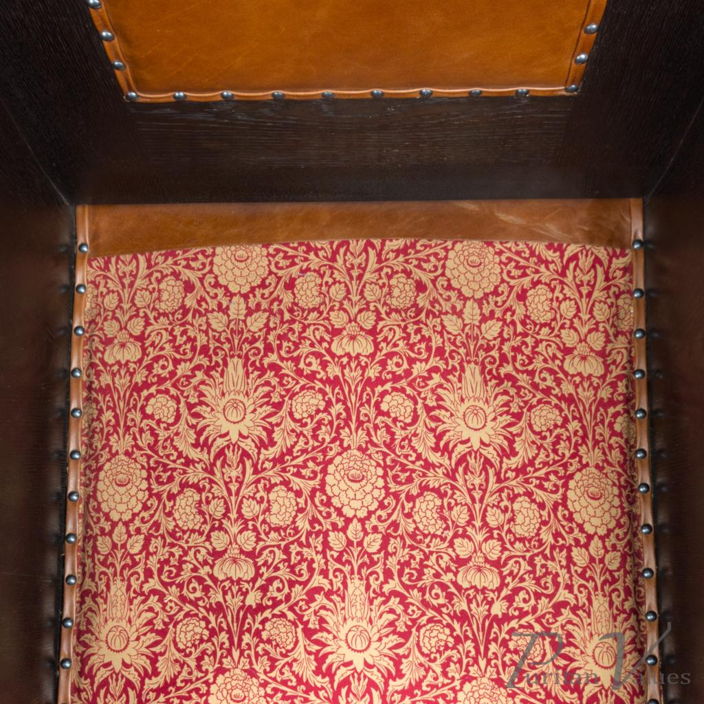 Baillie Scott’s use of dark finishes and mother-of-pearl inlay is well documented in comparable early 1900s seating, including an armchair made by the Dresdener Werkstätten for the 1903–1904 Dresden Werkstätten Exhibition, and the related ceremonial chair type held by the Musée d’Orsay, where mother-of-pearl back inlay is described as a signature feature used across his models.