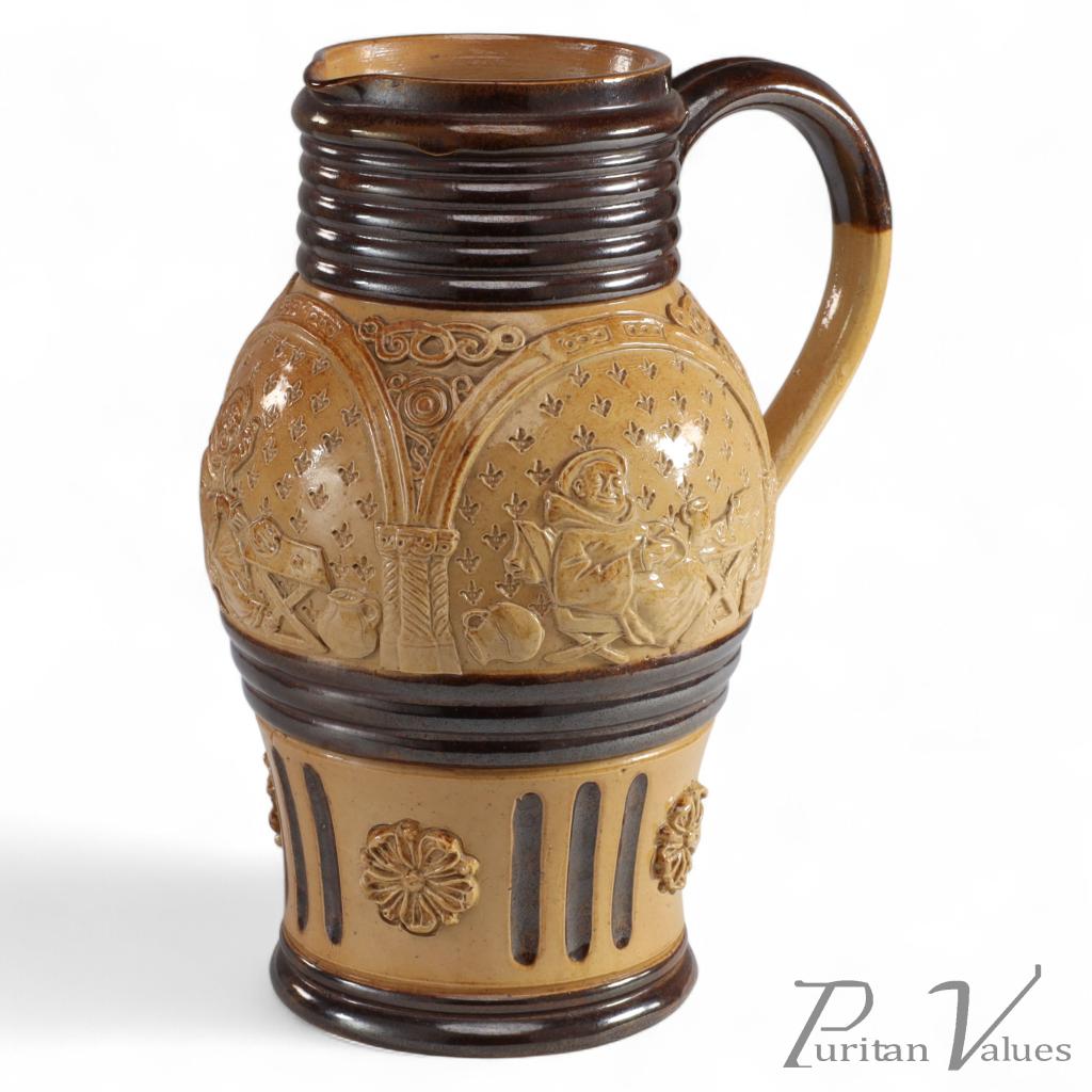 Royal Doulton Lambeth Gothic Revival a Comical Jug with Scenes of a Drunk Monk | Dickinson's Real Deal