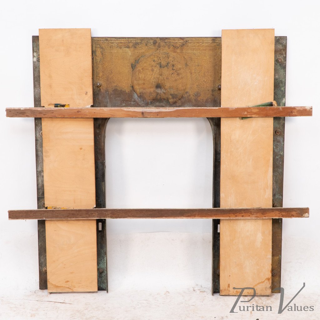 T. Elsley, attributed. Aesthetic Movement Brass Fire Insert W. Upper Central Peacock