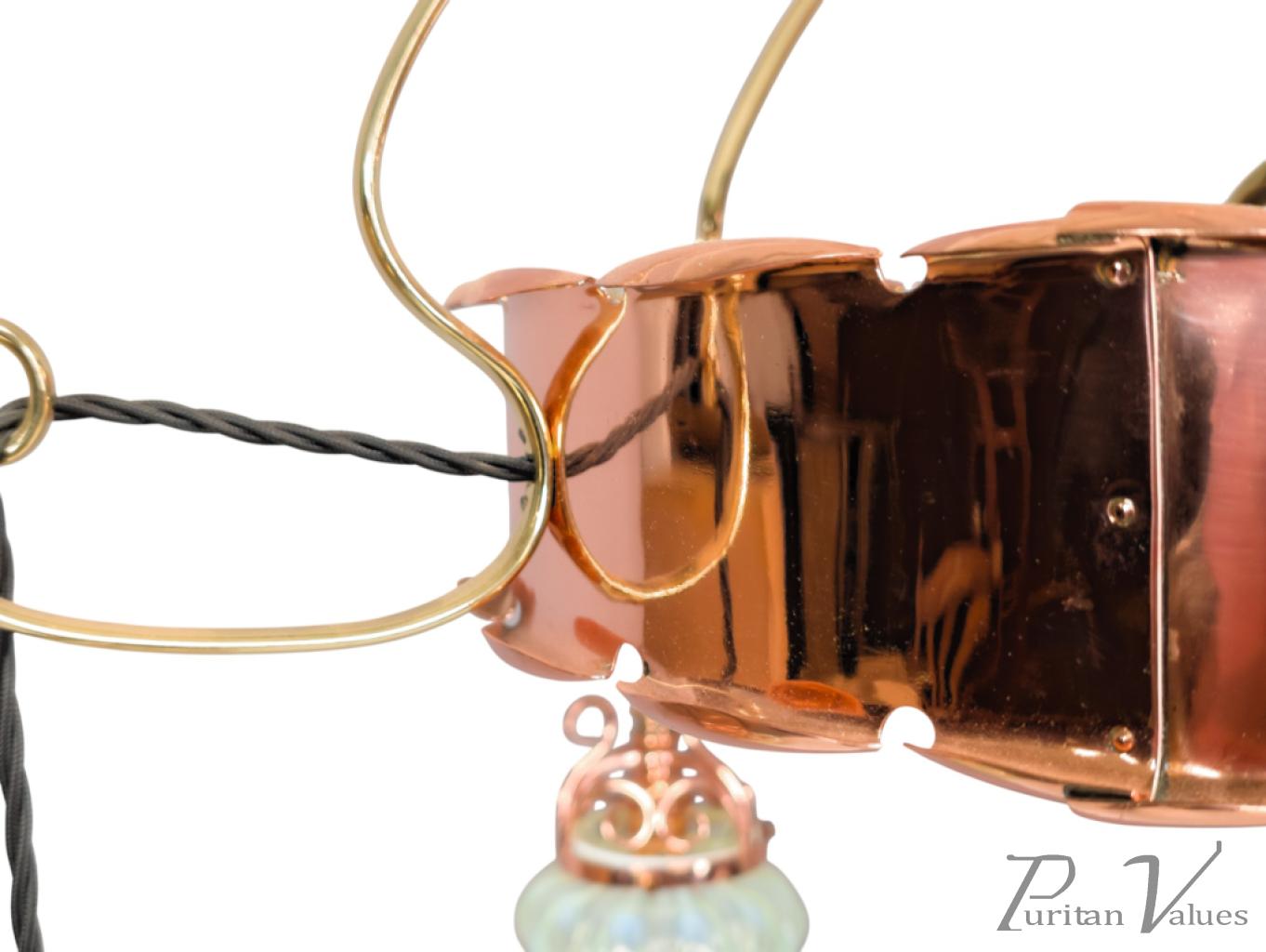 The whiplash arms flow down to join the circular copper ring, which has decorative curved over edges to the top and bottom of the ring.